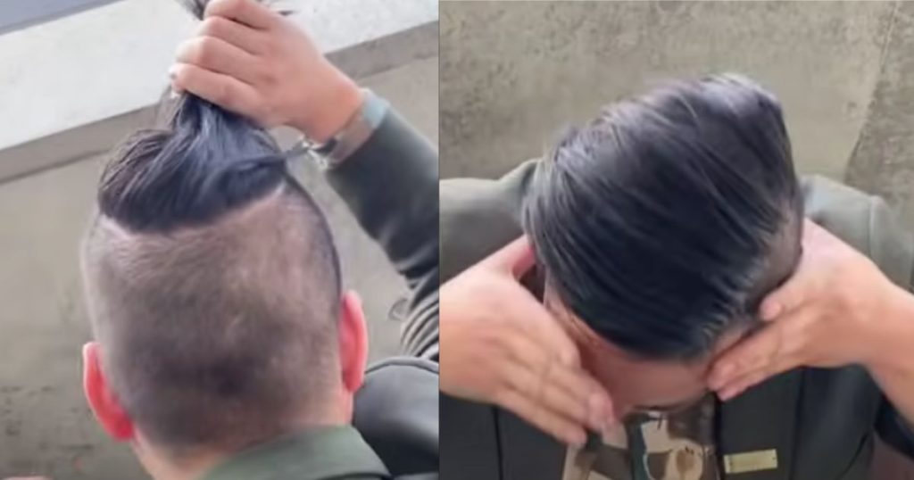 後姿を見ると分かりますが、おでこの位置とほぼ同じ高さで頭を一蹴刈り上げていることが分かりました!