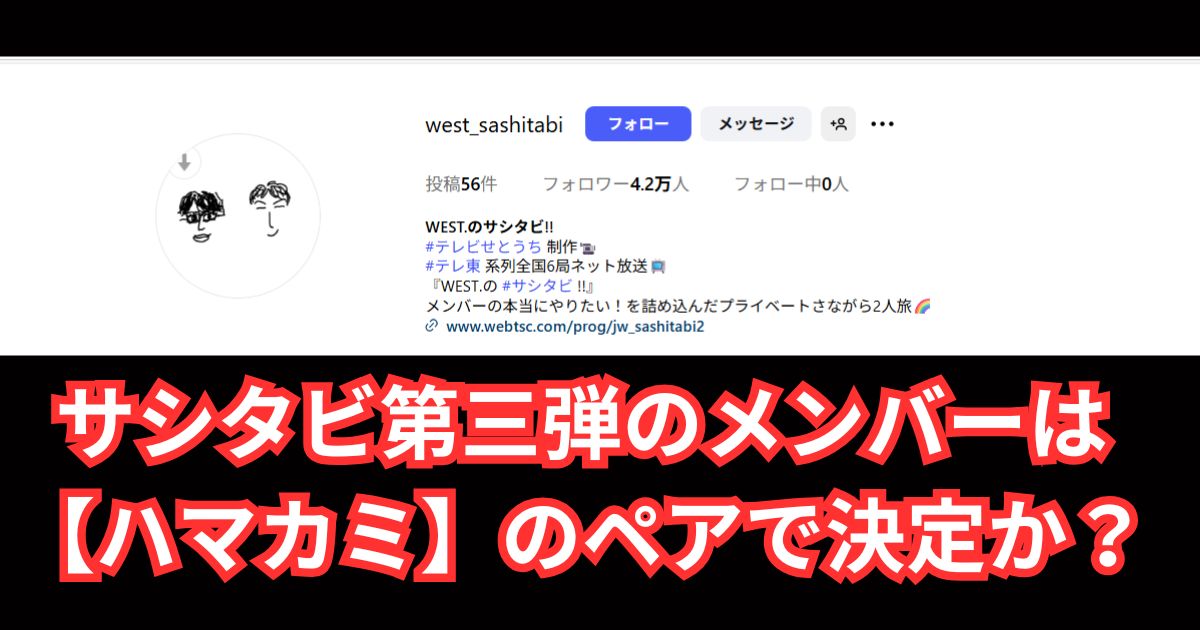 そして、前述したインスタのアイコンからサシタビ第三弾は【神山智洋】さん【濵田崇裕】さんのペアになるのではないかと予想されます