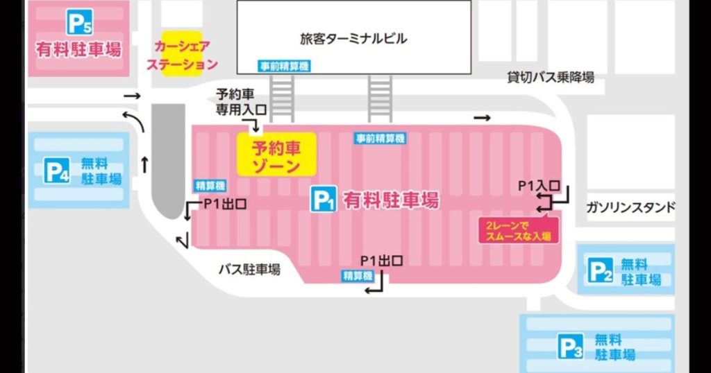 駐車場はかなり広く、サービスも充実しており買い物として空港内の施設を利用することも可能になっています。