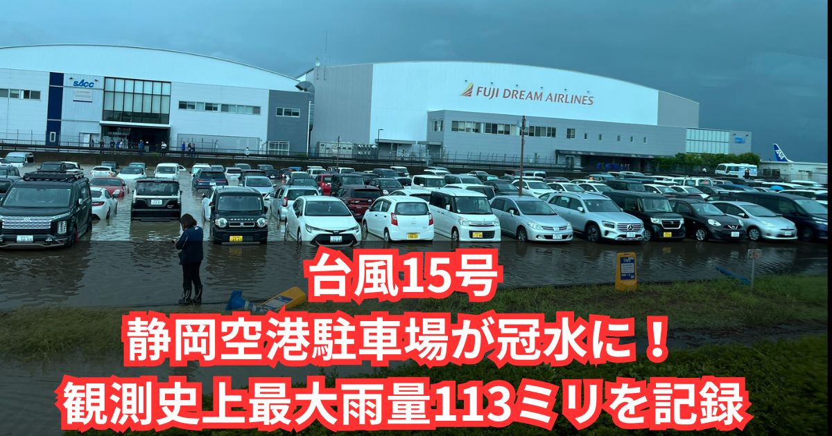 【画像】静岡空港『台風15号』被害状況まとめ!駐車場が浸水で車の水没被害が多数!