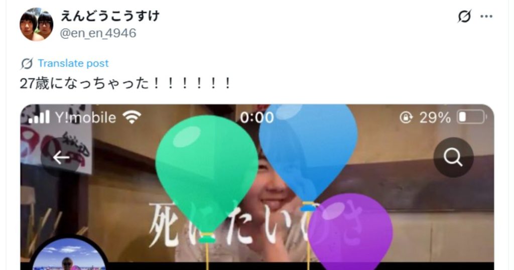 ・えんどうこうすけさんは、1997年生まれで現在27歳