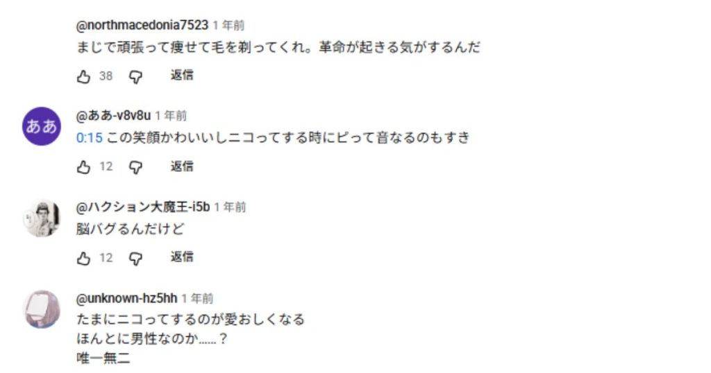 コメント欄でも「女性かと思った」とのコメントも実際にありました!