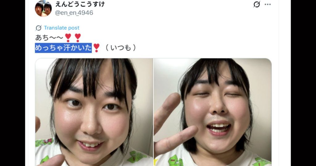 その内容としてはえんどうこうすけさんの【めっちゃ汗かいた】というコメントと画像を模倣したと思われる画像を投稿したことにあります。