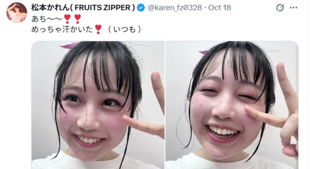 SNSでは、えんどうこうすけさんと女性アイドルグループ・FRUITS ZIPPERメンバーの『松本かれん』さんが似ているとSNSで話題になりました。