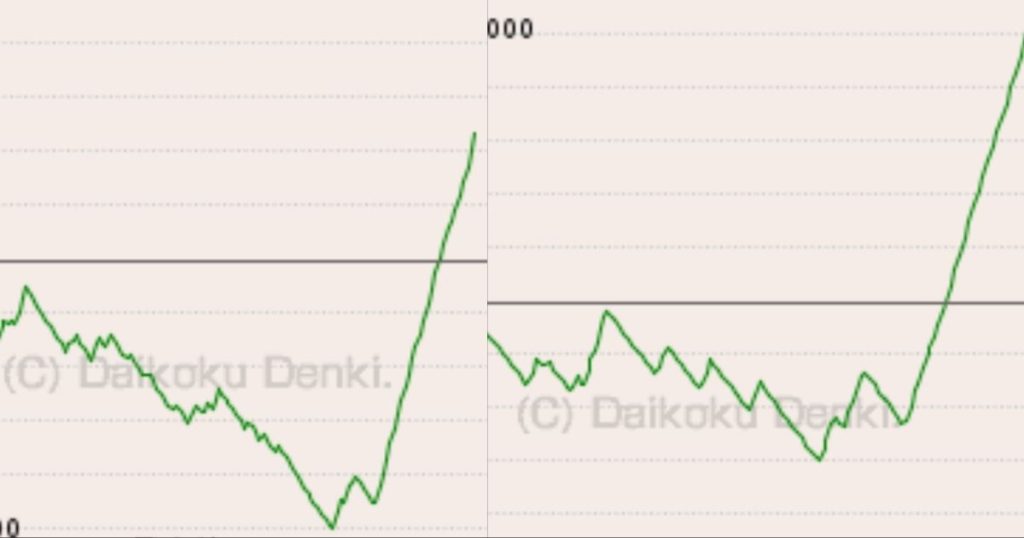 しかし、結局はピーク時を越えることが出来ずに終了していることが分かります。