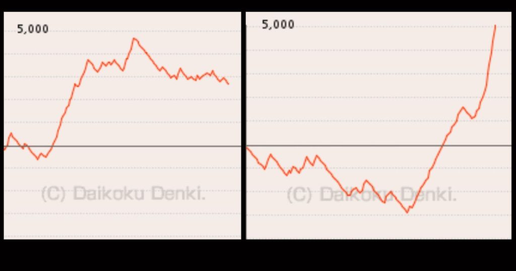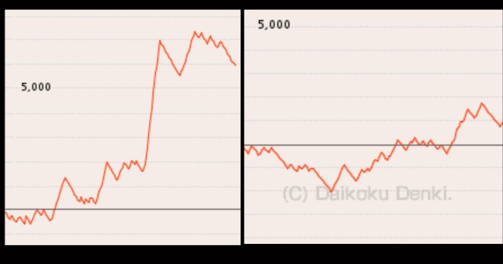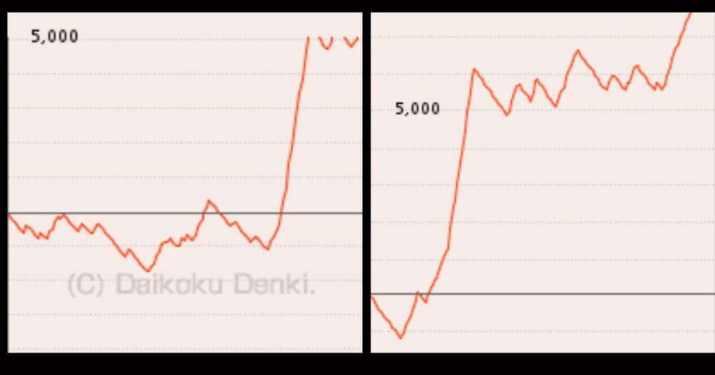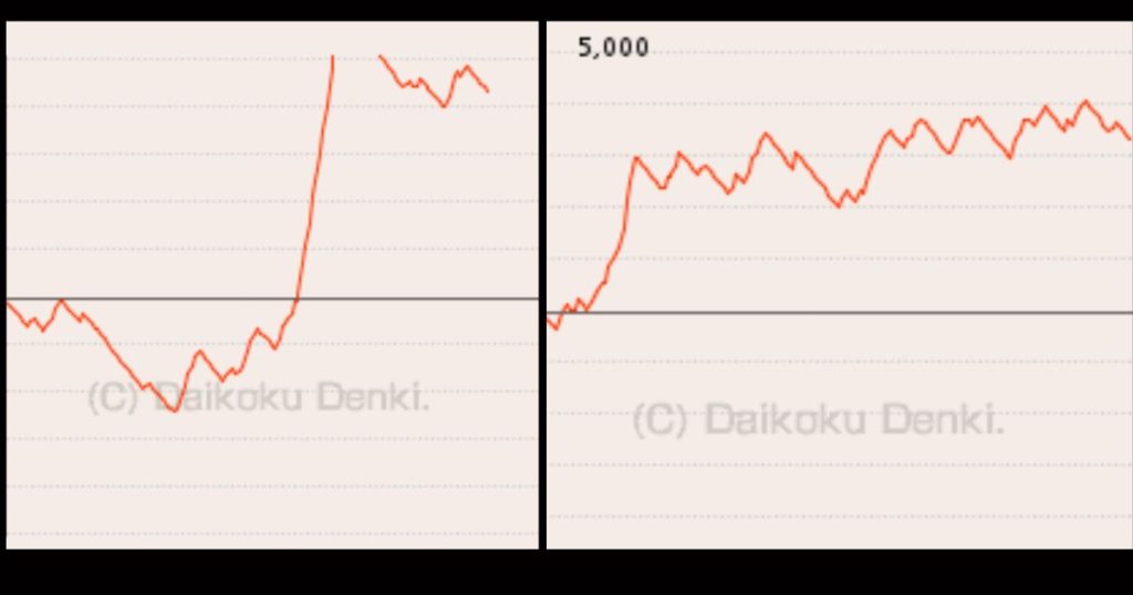 設定6であれば、右肩さがりに沈むような挙動は起きにくく、ギザギザと耐えるようなグラフを描くイメージです。